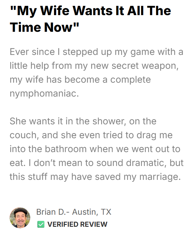 I didn’t expect much at first. Just hoped to feel… normal again. But the second night using Men’s Growth, something changed. We started slow — but then I saw it. That look on her face. She gripped me tighter. Pulled me closer. And didn’t want it to end. For the first time in years, I wasn’t worried about timing, performance, or failure. I just let go — and let the moment take over. She smiled after, laid there breathing heavy… Then said, ‘Where did that come from?’ I just smiled back. It reminded me of who I used to be.